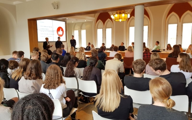 Vejles smukke rådhus var fyldt til randen af 130 gymnasieelever, lærere og dommere, da Rosborg Gymnasium og HF torsdag d. 15.3 afholdt den lokale finale i årets samfundscup. Samfundscup er en landsdækkende konkurrence, hvor samfundsfagsklasser dyster om at udvikle den mest innovative ide ude fra et årligt tema – i år var det ”sammenhængskraft”.