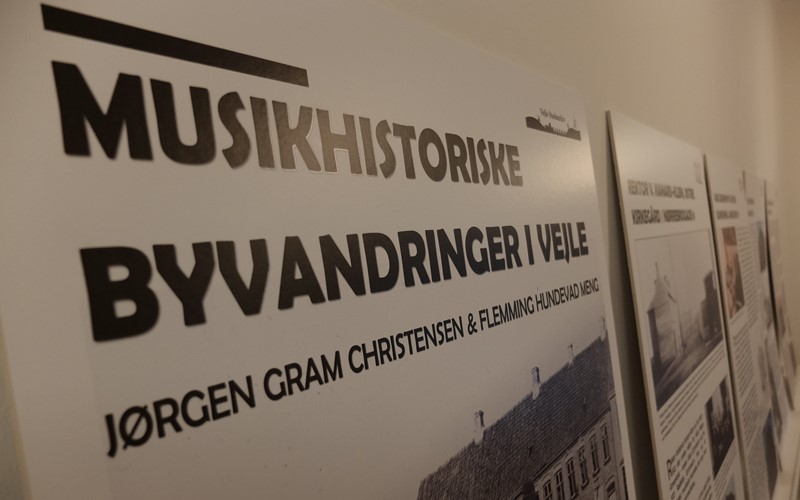 Indtil nytår kan udstillingen ”Musikhistoriske byvandringer i Vejle” ses på Vejle Stadsarkiv. Udstillingen bygger på musikskolechef Flemming Hundevad Mengs og musikbibliotekar Jørgen Gram Christensens udgivelse af samme navn, hvori de fører læseren rundt i Vejles gader og fortæller om nogle af de mange spændende musikere og komponister, der har boet og spillet i Vejle gennem tiden.