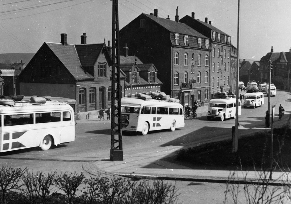 I Vejle lykkedes det at finde 17 private busser til den store kørsel af nordiske kz-fanger.