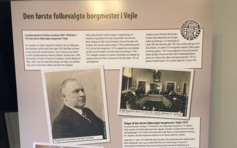 I forbindelse med 100 års jubilæet for valget af Vejles første folkevalgte borgmester udarbejdede stadsarkivet en planche om borgmester Christian Jacobsen.