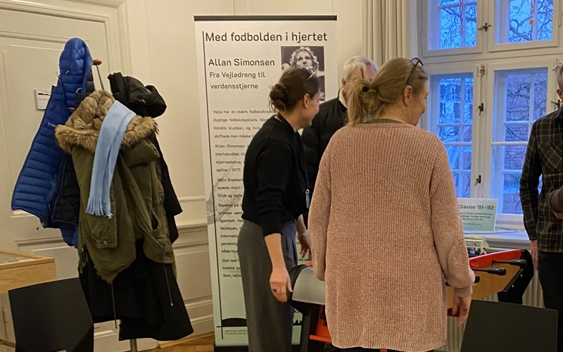 Vores gæster så udstillingen om fodboldspilleren Allan Simonsen, og der blev spillet bordfodbold med både scoringer og jubel til den helt store guldmedalje. Historie og historiefortælling kan nemlig noget helt særligt. Det kan knytte bånd mellem mennesker og åbne for erindringer, forståelse og samtale. Det blev tydeligt, når arkivar Pernille Schous fortalte om udstillingen og om Allan Simonsens barndom og ungdom i Vejle, fodboldklubberne, landsholdet og den store karriere. Det satte gang i både grin og en masse snak om dengang og nu.