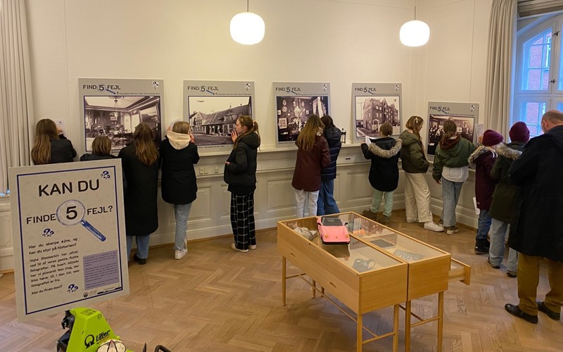 Du kan også gå på opdagelse i vores udstillingssal. Netop her havde vi forleden den fornøjelse at have besøg af elever fra Sct. Norberts Skole & Børnehus. De brugte deres historiske viden og skarpe øjne på vores udstilling ”Find 5 Fejl”. Som ægte tidsdetektiver fandt eleverne de historiske fejl, vi har manipuleret ind på nogle af vores flotte, gamle fotografier.