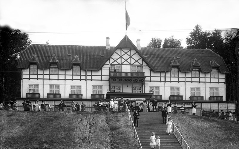 Et af sommermånederne viser et stemningsfuldt billede fra badehotel-tiden, og sidst på året skal vi en tur på skihopbakken i Nørreskoven.