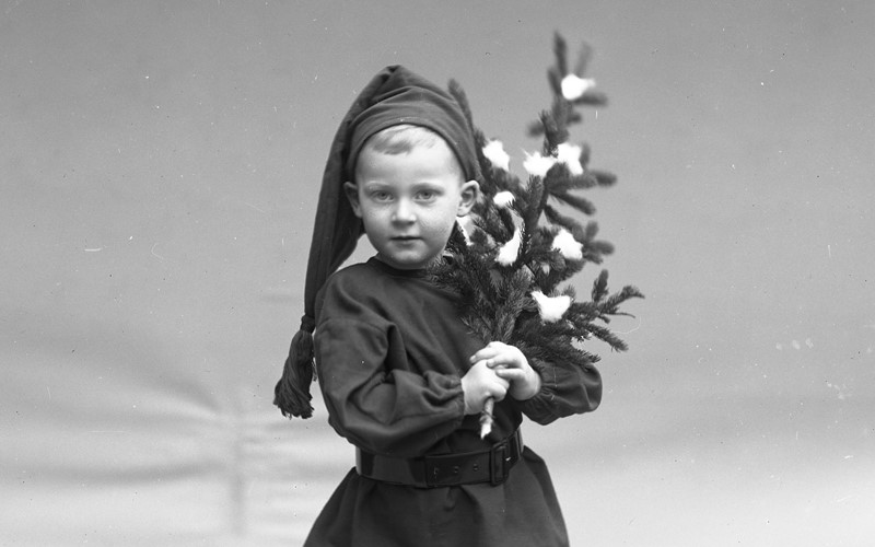 En lille julenisse klar til børnenes fest. Der er tale om 3-årige Erik Jørgen Müller klædt ud som nisse og fotograferet i 1913. Erik var søn af Ingrid Christine Müller og Carl Vilhelm Müller, direktør for Vejle Textilfabrik. Foto: H.P. Jensen. Vejle Stadsarkiv.