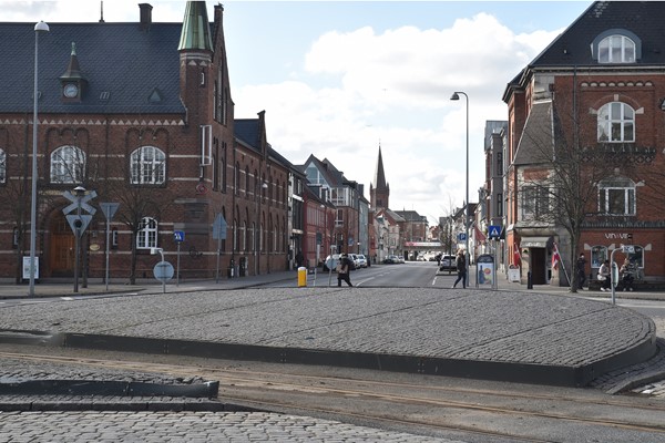 Her har vi anvendt et billede fra Havnepladsen 1920'erne (Link til arkiv.dk) som grundlag for en sammenligning med et billede fra 2021.