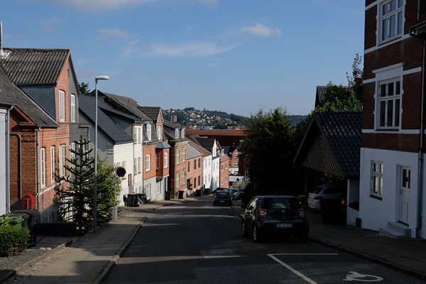 Her har vi anvendt et billede fra Kiddesvej i Vejle, set mod Vejle midtby (Link til Arkiv.dk) som grundlag for en sammenligning med et billede fra 2019.