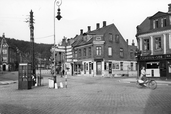 Koldingvej set fra pladsen foran Odd-Fellow bygningen, Koldingvej 1. (Link til Arkiv.dk)