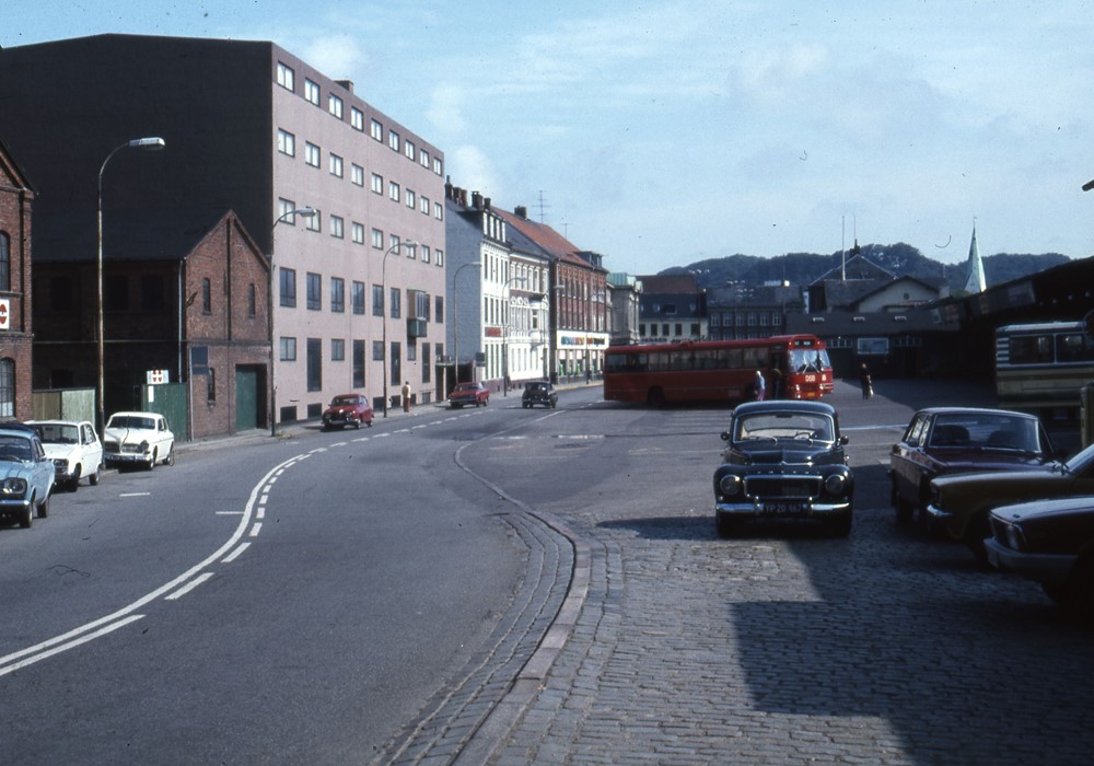 Det eneste genkendelige er, at her stadig kører busser. Rutebilstationen, eller Vejle Trafikcenter, som det hedder i dag, ligger her stadig.