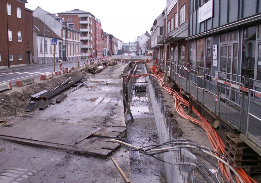Efter årtusindeskiftet er tiderne skiftet og det er blevet udbredt at fritlægge åerne gennem de danske byer. Vejle er ingen undtagelse. Månedens billede viser gravearbejdet på Dæmningen i januar 2008. Den fritlagte å og metalbroerne blev indviet samme år: Mølleåen kom endnu engang til syne i Vejle.