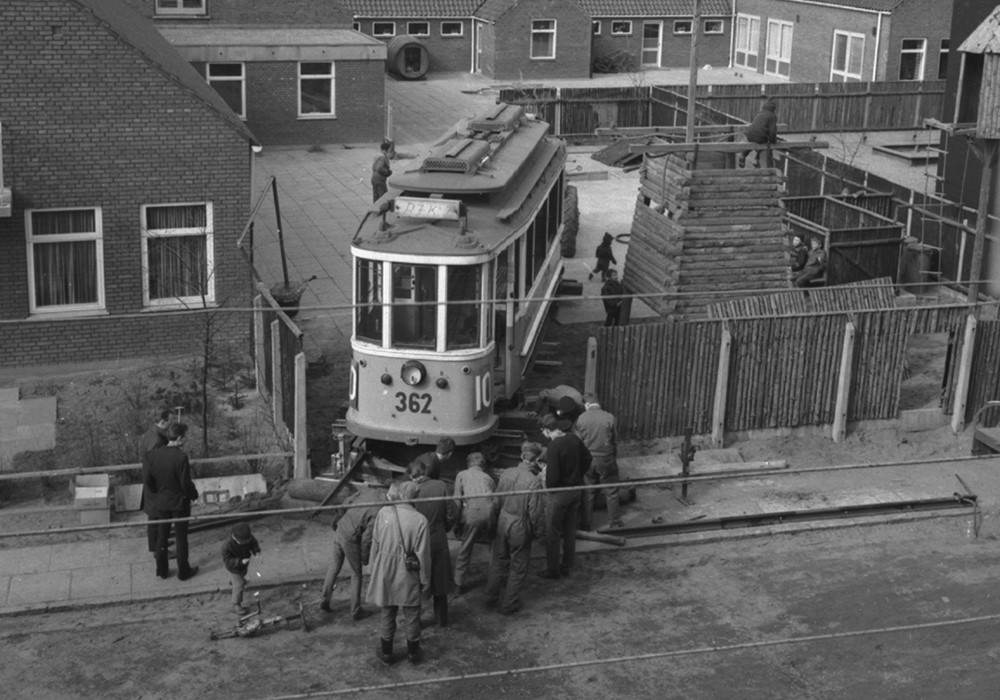 Selv om sporvognen ikke bevægede sig meget rundt i byen, er der ingen tvivl om at den har bragt mange børn på adskillige fantasifulde rejser. På månedens billede er vogn 362 ved at blive bugseret ind i Sct. Georgshjemmets børnehave, Sjællandsgade 1, hvor den erstattede en gammel godsvogn på legepladsen.